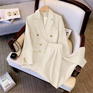 POMTOR 빅사이즈 여자 정장 세트 오피스룩 면접 복장 여성 봄 가을 정장 자켓 긴바지 투피스 세트