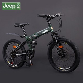 Jeep 접이식 자전거 20인치 폴딩바이크 자동차 트렁크에 실을 수 있으며 남녀 공용 성인 통근 변속 자전거, 20 플라잉 타이거 아미 그린 프로, 1개