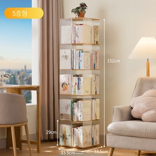 PawJoy 회전책장 고급스러운 회전 책장 360도 대용량 유아책장 조립식책장 책꽂이 원목 진열장, 5단, 아크릴 모델5단