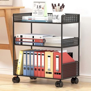 SeekFun 이동식 책꽂이 책상 옆 책꽂이 철제책 수납 간이 학생 책장, 블랙 라지/Black Large