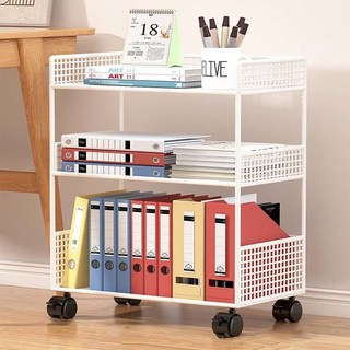 SeekFun 이동식 책꽂이 책상 옆 책꽂이 철제책 수납 간이 학생 책장, 화이트 라지/White Large