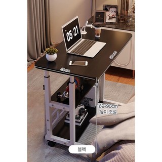 스피세프 높낮이조절 이동식 침대테이블 노트북 베드 테이블, 블랙기본
