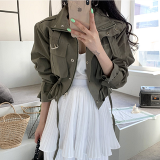 나라라오리 스트랩 포켓 반집업 미니 숏 야상 자켓