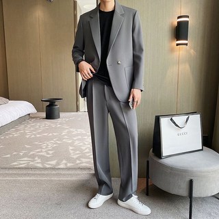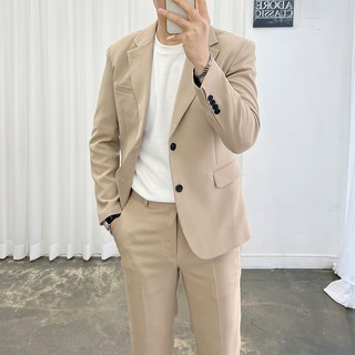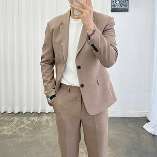 언탭트 남성용 사계절 투버튼 캐주얼 수트 자켓 + 긴바지 세트