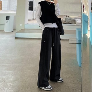마쿠쿠 포켓 롱 기장 여성 와이드 핏 바지 트레이닝 데일리 팬츠