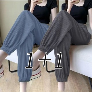 1+1 여성 시원한 츄리닝바지 하이웨스트 여름 밴딩 와이드 팬츠 9부 경량 조거바지