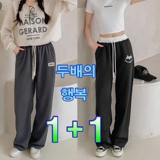여성 트레이닝바지 봄/가을/간절기/사계절 츄리닝바지 [1+1] 심플 레터링 일자 통바지 밴딩팬츠 데일리 와이드핏 -각각 다른 디자인선택