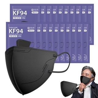 리벤스 에버퓨어 새부리형 황사방역마스크 대형 KF94, 블랙, 20개, 5개입