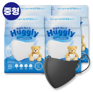 허글리 국내산 KF94 핏하고 숨쉬기 편한 새부리형 마스크, 블랙 중형, 1개, 100매