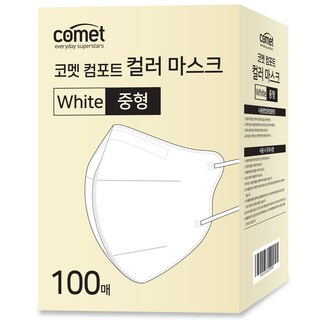 코멧 컴포트 컬러 마스크 새부리형 중형 (레귤러핏), 100개입, 1개, 화이트