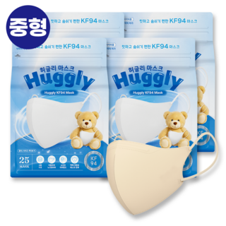 허글리 국내산 KF94 핏하고 숨쉬기 편한 새부리형 마스크, 스킨베이지 중형, 1개, 100매