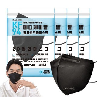 데일리핏 새부리형 KF94 100매 대형 메디케이알 컬러 황사 마스크, 25개입, 4개, 모던블랙