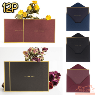 마루오피스_ 고급스러운 축하 메시지 카드 와인색 남색 검정색 연극 박물관 파티 초대 축하 봉투와 카드세트 메세지카드 축하카드 고급카드 축하메세지카드 엽서, 와인색상, 1세트