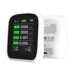 mojoo 공기질측정기 포름알데히드 감지 이산화탄소 경보기 온습도계 TVOC 새집 신가구 건강 선물 다기능 액정화면, 1개, 흰색