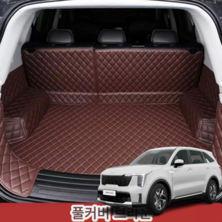 럭키카 쏘렌토 MQ4 트렁크매트 카매트 차박매트 방수 가죽 매트 (도어매트증정), 브라운, 5인승크렐사운드무