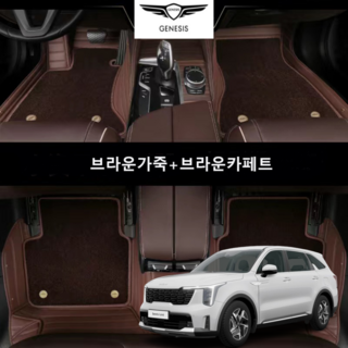 럭키카 쏘렌토 카매트 바닥매트 QM4 4세대 6D 이중 코일 융모 럭셔리 쏘렌토4세대, 브라운, 7인승