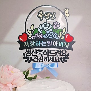 [달빛봉봉] 축생신 꽃풍선 케이크토퍼 아빠 할아버지 생신축하 생일파티 - 핸드메이드 토퍼제작, 1개, 메인토퍼+미니하트픽2
