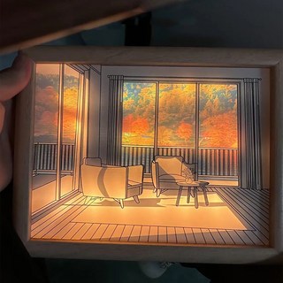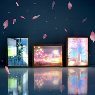 [매직 드로잉] '불을 켜면 변하는' 컬러풀 LED 원목 액자 무드등 3종, 01 창문가의 고양이