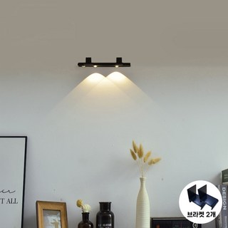 HK.sell 밀키웨이 원터치 자석부착형 LED 벽등, 블랙, 전구색, 2개