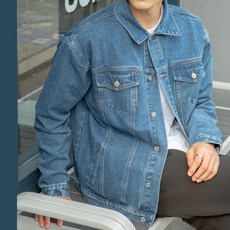 다이나믹피플 남성용 오버핏 패치 데님 청자켓 아우터