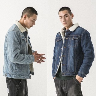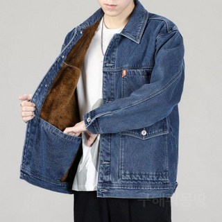 남자 청데님 코디 안감 따뜻한 캐주얼 보온 자켓 양털 청 트래커