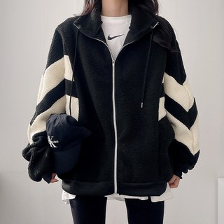 [디데이뉴] 부드러운 양털 후리스 오버핏 두줄 배색 뽀글이 하이넥 집업 점퍼 2color