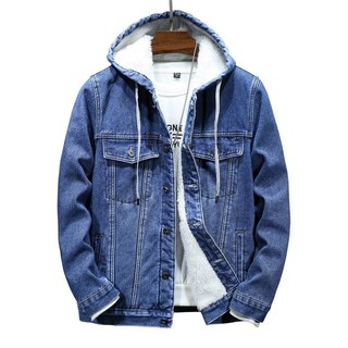 Ogfaour 데님 남자 자켓 남성 청자켓 코디 후드 루즈핏 재킷 청 겨울 윈드 브레이커 양털