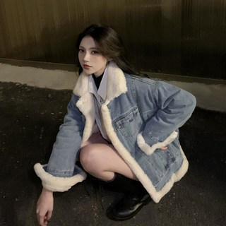 여성 기모 따뜻한 데님 청셔츠 겨울 루즈핏 융털 아우터 빅사이즈 두꺼움 코트