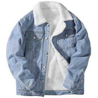 남성용 양털 안감 데님 자켓 겨울 보온 데일리 따뜻한 겨울 청재킷 청점퍼 아우터