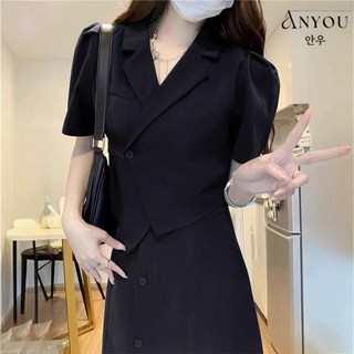 ANYOU 여성 봄 여름 정장 세트 직장인 키작녀 투피스 빅사이즈 슬림핏 면접 정장