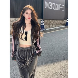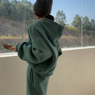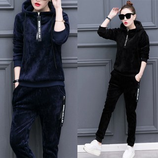 여성 기모 트레이닝 세트 벨벳 벨로아 후드
