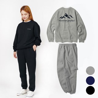 이그잼플 국내생산 오버핏 여성 기모 트레이닝 세트 마운틴 맨투맨 후드티