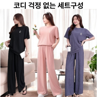 짱스샵 여성 플리츠세트 밴딩바지 냉감 여성트레이닝세트 캐주얼 운동복세트