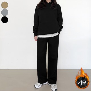 여리진 여성용 따뜻 기모 상하의 세트! 후드 기모 맨투맨 + 밴드 기모 일자 핏 팬츠 바지 키작녀 트레이닝 세트
