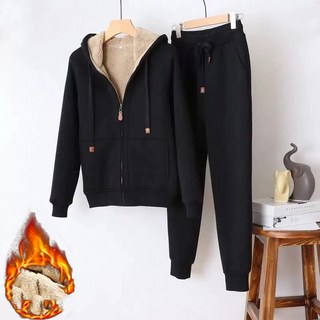 빅사이즈 여성 기모 트레이닝복 세트 후드 코트+바지 기모 트레이닝 세트 투피스