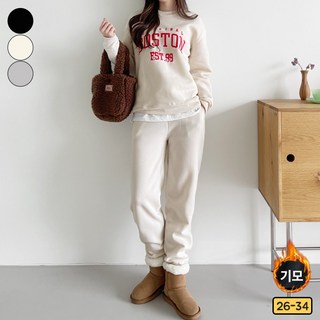 빼빼 여성용 기모 레터링 맨투맨 티셔츠 +기모 밴딩 조거 팬츠