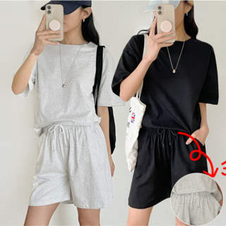 디어폴리 여름 여성 루즈핏 면 상하의 반팔 반바지 세트