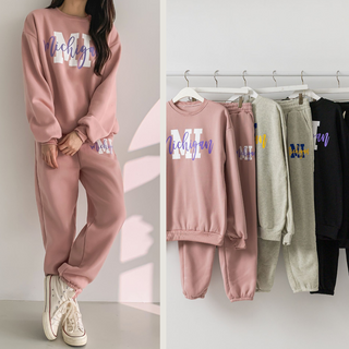 Asure 여자 기모 트레이닝복 레터링 디자인 후드티 맨투맨 스포츠 팬츠 투피스 세트