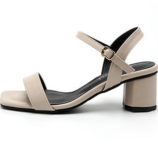 여성 가죽 미들힐 원스트랩 로우힐 버클 스트랩 샌들