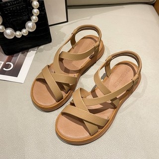 POMTOR 여성 스트랩 샌들 캐주얼 발편한 플랫 밴딩 샌달 비치샌들