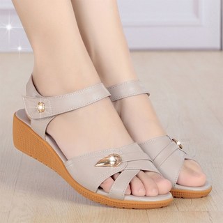 WEIHAN 중년여성 여름 가벼운 쿠션 가죽 소프트 밑창 발편한 푹신한 웨지샌들 스트랩 샌들