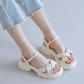 슈뿐 여성용 크로스 밴딩 스트랩 말랑 폭신한 데일리 발편한 샌들