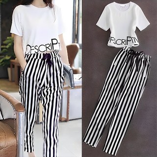 ANYOU 봄 여름 중년 여성 세트 와이드 팬츠 투피스 루즈핏 반팔+바지