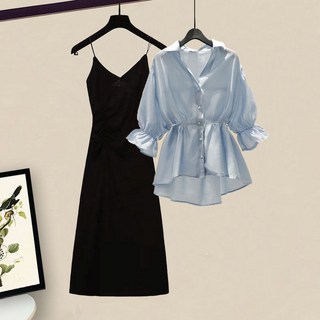 여성 반팔 정장 자켓 끈 나시 투피스 세트 캐주얼 하객 원피스 치마 슬림핏 디자인 세련된 룩