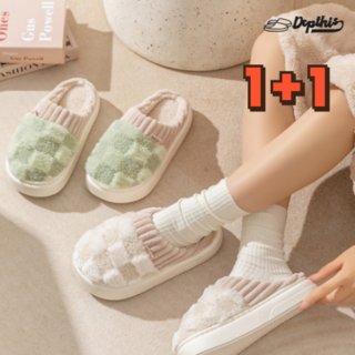 뎁시스 1+1 포근한 털슬리퍼 키높이 따뜻한 체크 슬리퍼 겨울 커플실내화 미끄럼방지 학생 간호사 여성