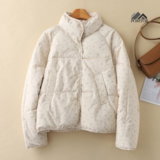 POMOR 여성용 패딩 자켓 플라워 숏패딩 트겨울코트