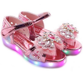 프롬베베 여아용 셀레네 글리터 망사 오픈토 LED 샌들