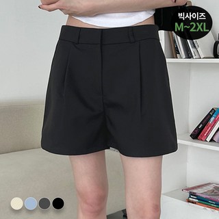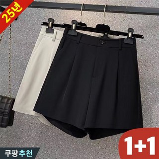 (완전 편한) 105kg까지 1+1 빅사이즈 날씬해보이는 여성 얇은 쿨링 하이웨이스트 정장 반바지 여름 슬렉스 버튼 포켓 베이직 와이드 블랙 쿨원단 실내복 일자 캐쥬얼 숏팬츠