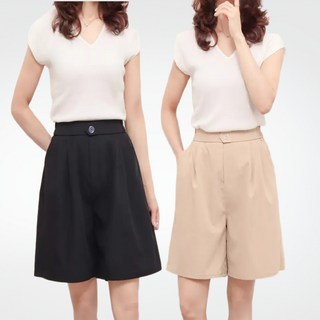 ROYALBELLE 여성 하이웨스트 정장 반바지 오피스룩 캐주얼 와이드 반바지 루즈핏 5부 바지 E0031107