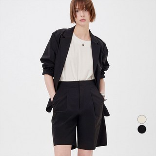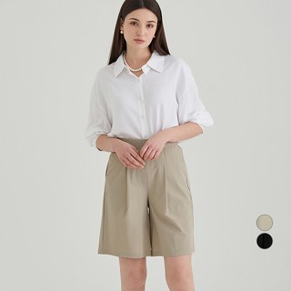 잇진 여성 투핀턱 뒷밴딩 스판 버뮤다 5부 슬랙스 팬츠 반바지